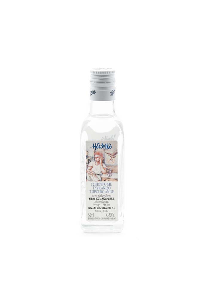 The famous Macedonian anise gives the high-quality Idoniko Tsipouro its fine aroma. Clear that becomes lightly milky with the addition of water in the glass. The aromas of the anise dominate on a discreet fruity background. Soft and gentle, with a persistent, spicy finish. Enjoyable with either meaty or sea food meze dishes. The label is adorned by Yannis Nanos artwork.