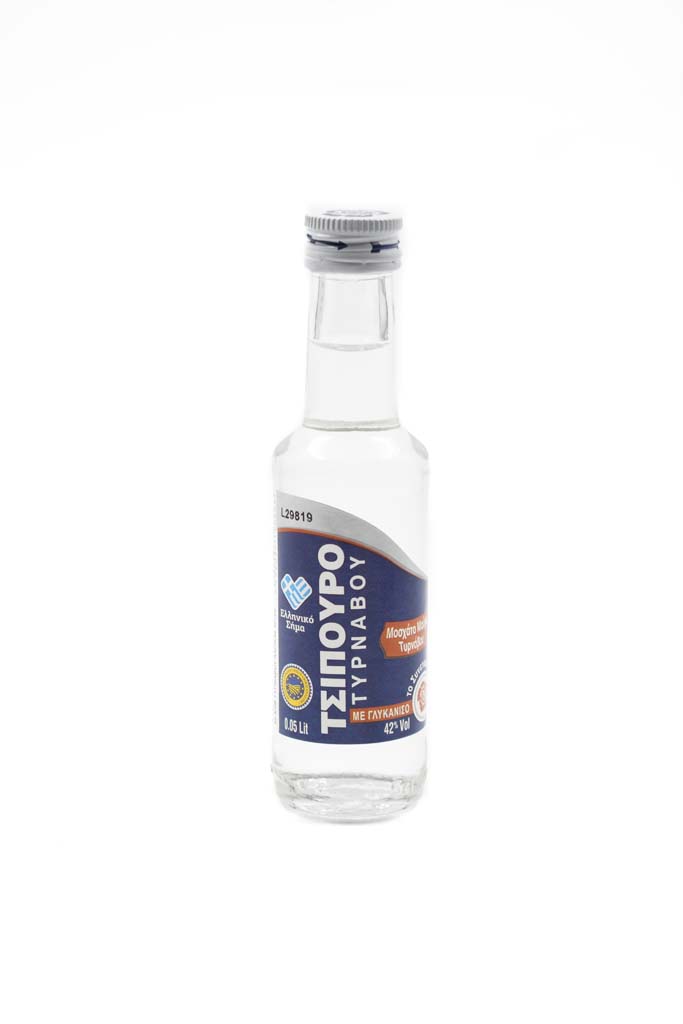 Tsipouro of Tyrnavos is a refined distillate that has made the city of Tyrnavos famous all over the world. It is a high-quality anise-flavoured tsipouro that comes from the exceptional grape variety “Black Muscat of Tyrnavos” and combines the intense anise aroma with the soft rosy aroma of the variety.
